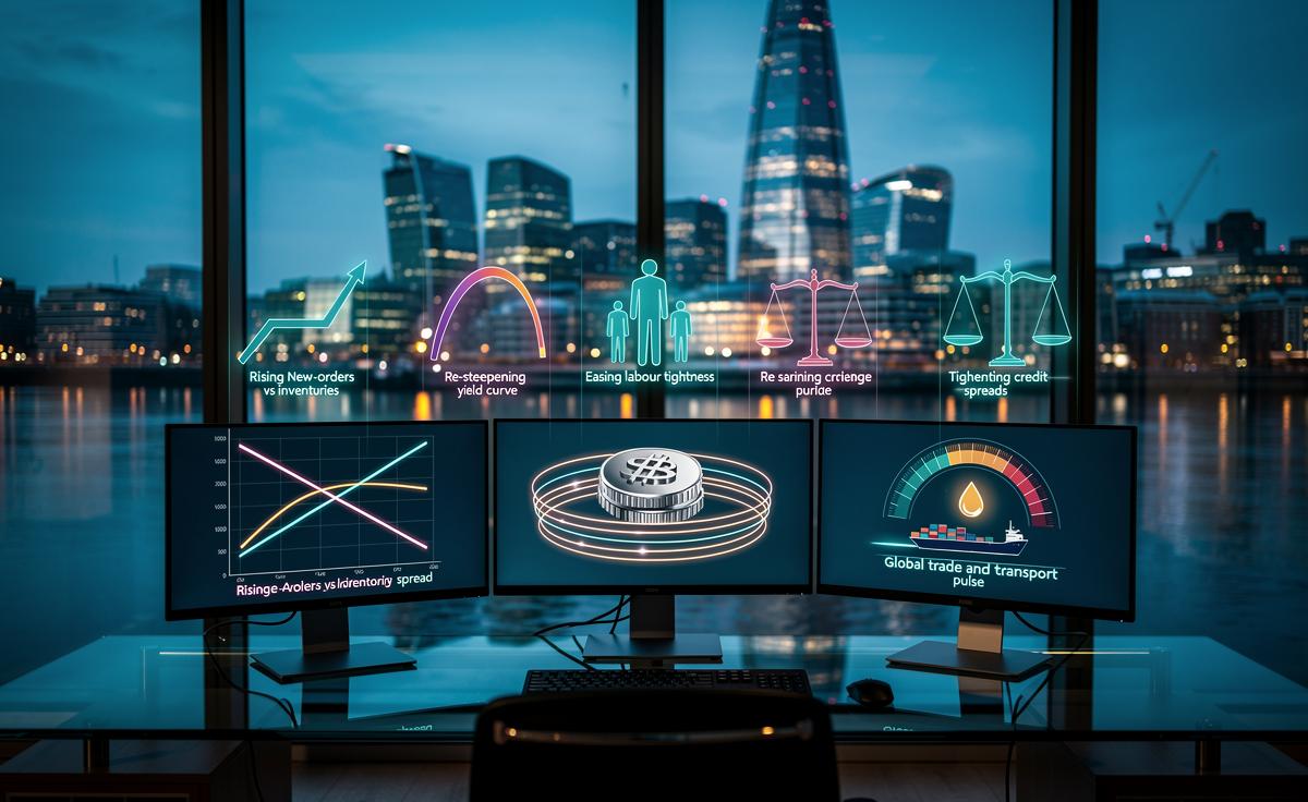 - 📈 PMI New Orders–Inventories Spread: A sustained spread of >3 points for 2 months signals early demand recovery, favouring FTSE 250 cyclicals and SMEs; corroborate with supplier delivery times and export orders.